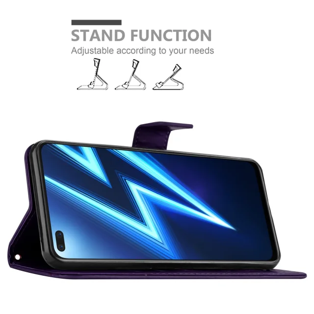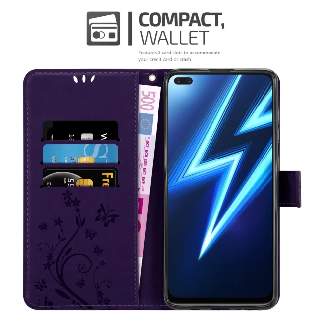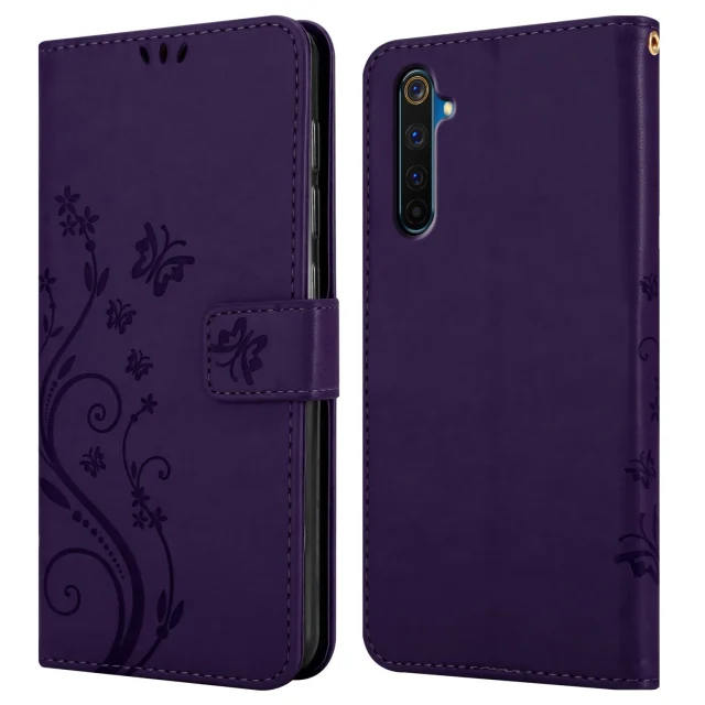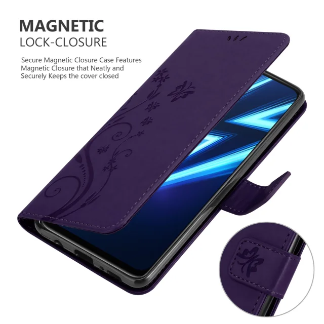 CADORABO RealMe temno vijolična - zaščitni pokrov pri oblikovanju cvetja z magnetnim zapiranjem, stoječimi funkcijami in režami za kartice