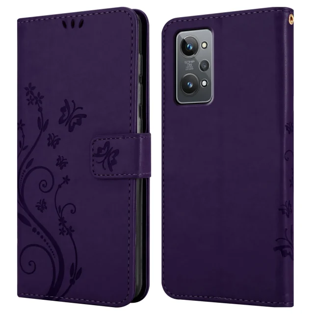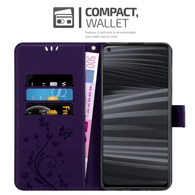 CADORABO RealMe temno vijolična - zaščitni pokrov pri oblikovanju cvetja z magnetnim zapiranjem, stoječimi funkcijami in režami za kartice