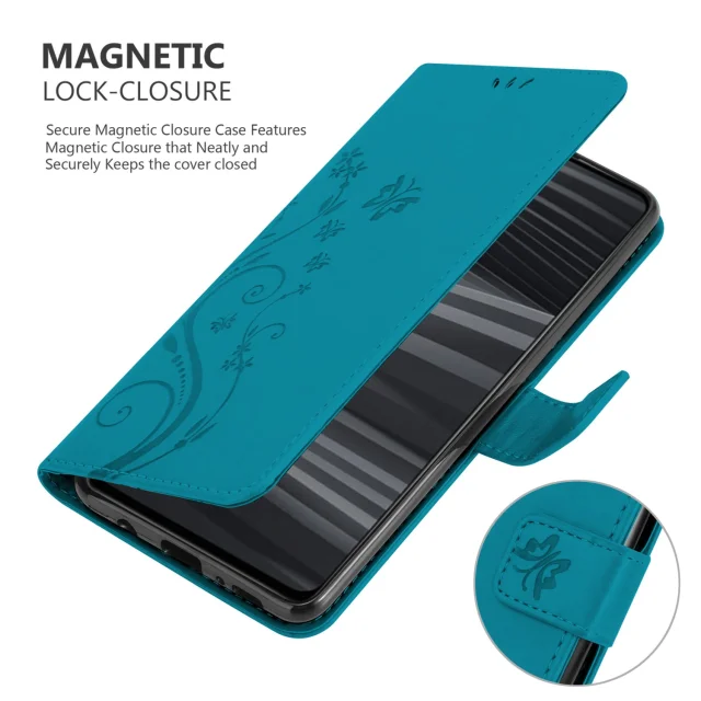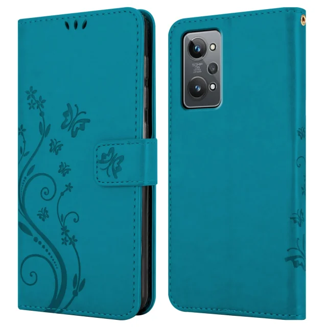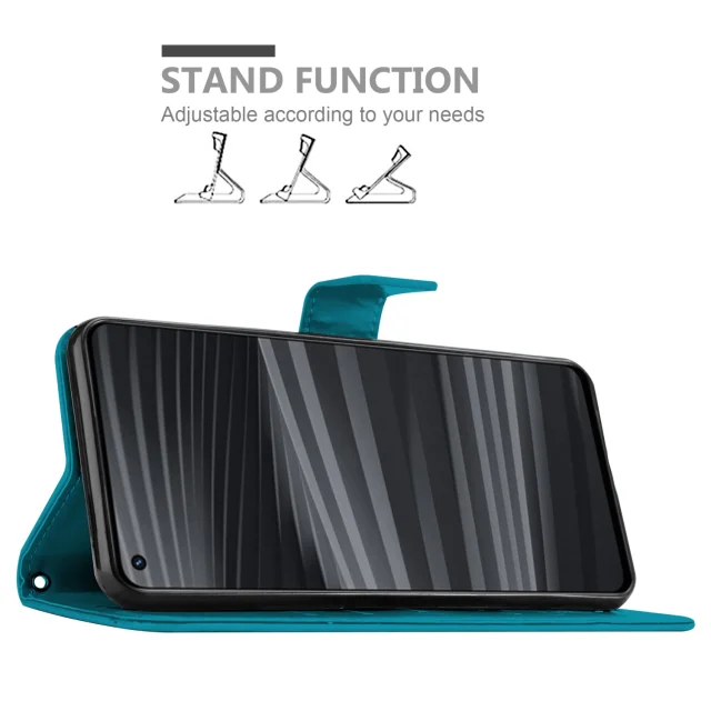 CADORABO Realme v cvetlični modri barvi - zaščitni pokrov pri oblikovanju cvetja z magnetnim zapiranjem, stoječimi funkcijami in režami za kartice