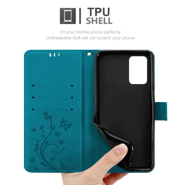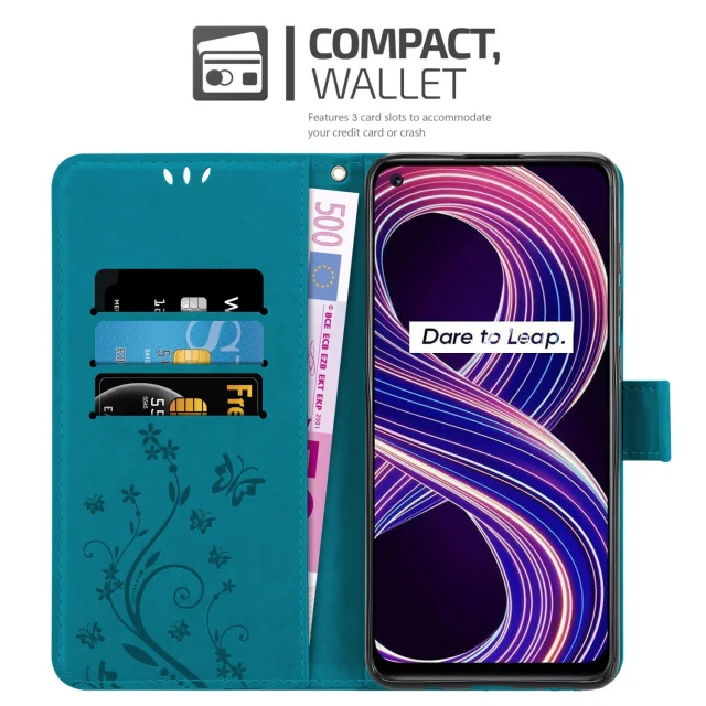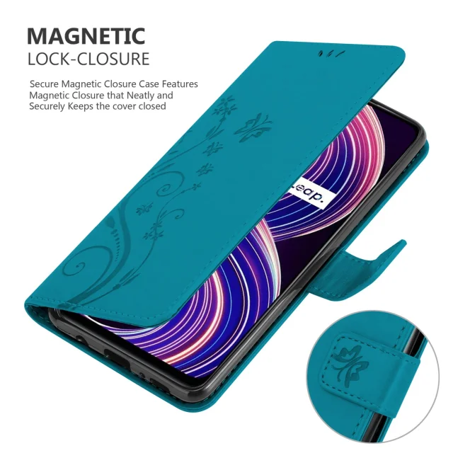 CADORABO Realme v cvetlični modri barvi - zaščitni pokrov pri oblikovanju cvetja z magnetnim zapiranjem, stoječimi funkcijami in režami za kartice