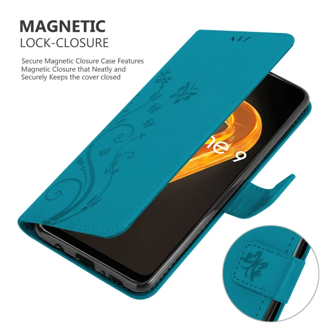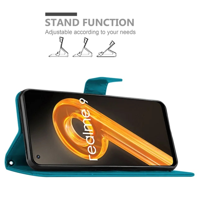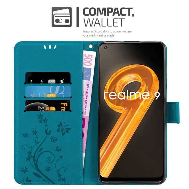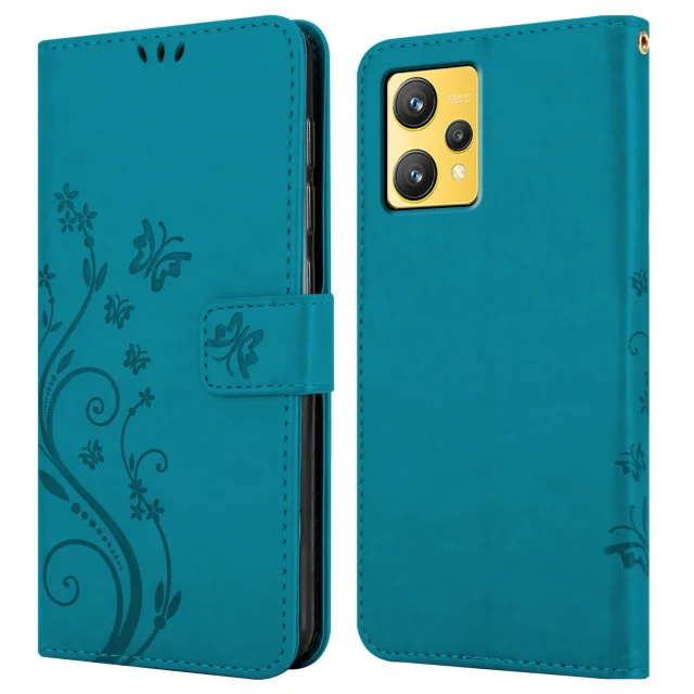CADORABO Realme v cvetlični modri barvi - zaščitni pokrov pri oblikovanju cvetja z magnetnim zapiranjem, stoječimi funkcijami in režami za kartice