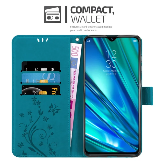 CADORABO Realme v cvetlični modri barvi - zaščitni pokrov pri oblikovanju cvetja z magnetnim zapiranjem, stoječimi funkcijami in režami za kartice