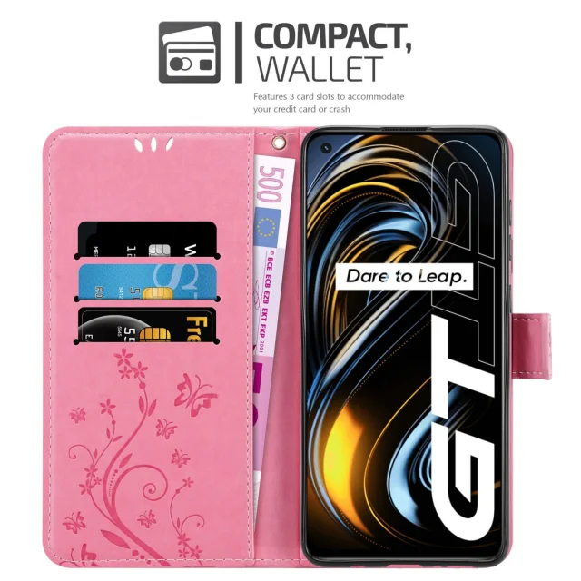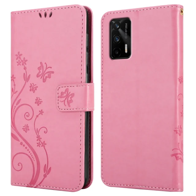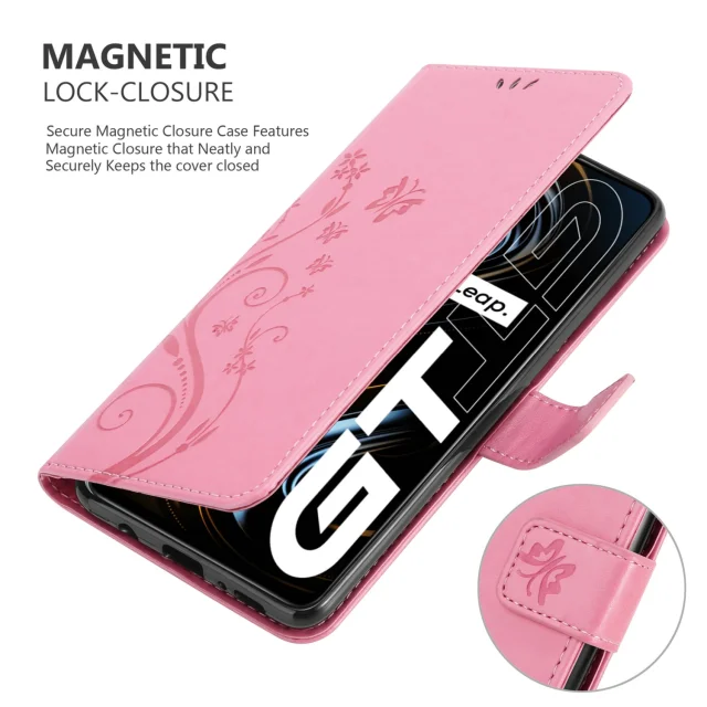 CADORABO Realme v cvetlični roza barvi - zaščitni pokrov pri oblikovanju cvetja z magnetnim zapiranjem, stoječimi funkcijami in režami za kartice