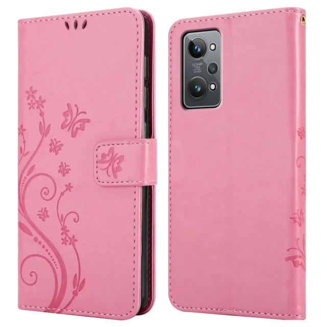 CADORABO Realme v cvetlični roza barvi - zaščitni pokrov pri oblikovanju cvetja z magnetnim zapiranjem, stoječimi funkcijami in režami za kartice