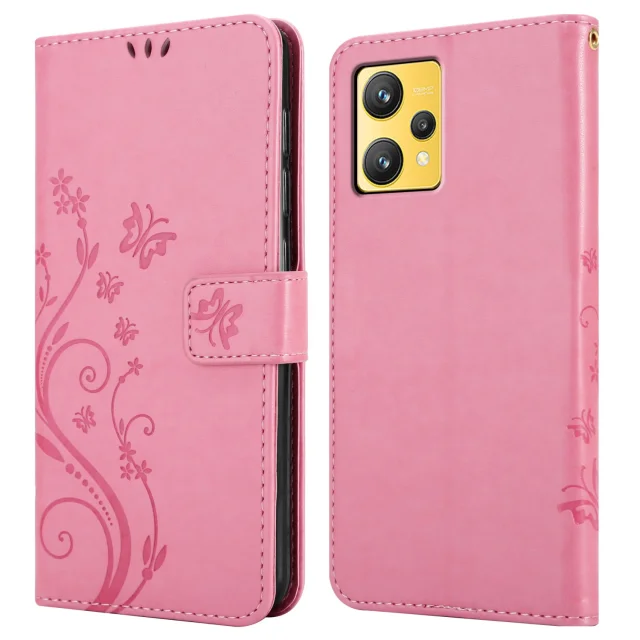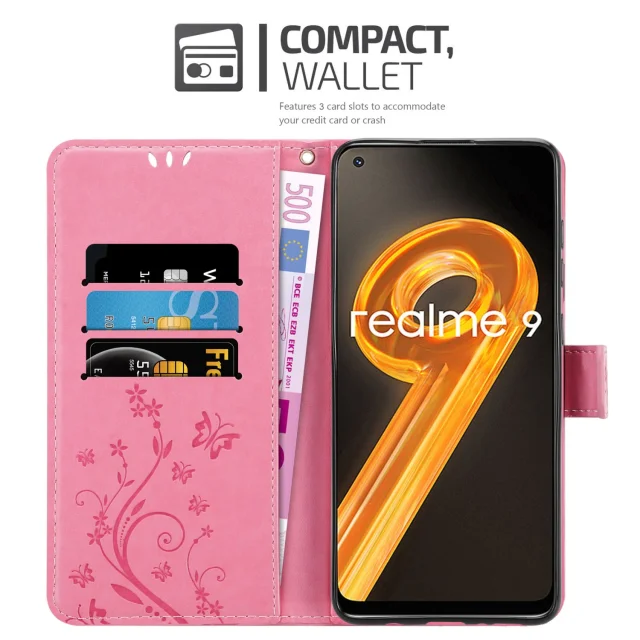 CADORABO Realme v cvetlični roza barvi - zaščitni pokrov pri oblikovanju cvetja z magnetnim zapiranjem, stoječimi funkcijami in režami za kartice