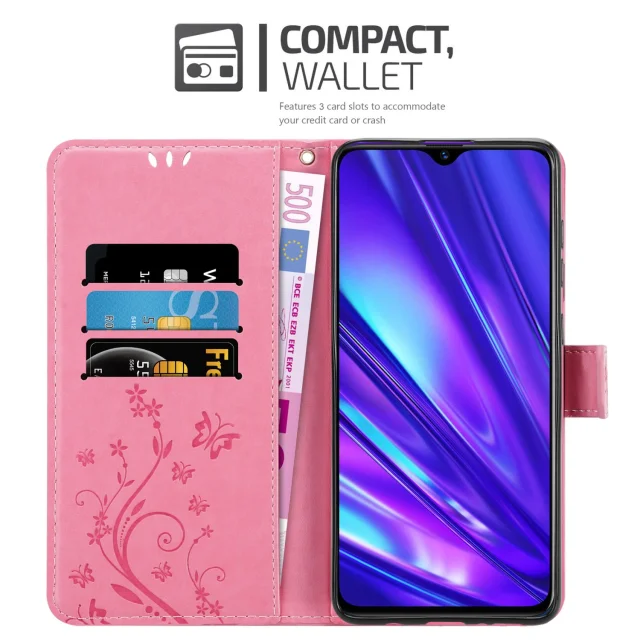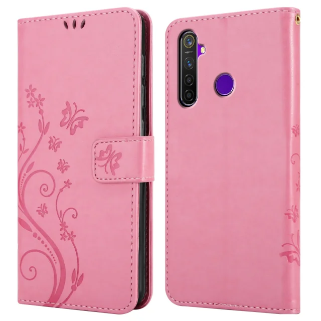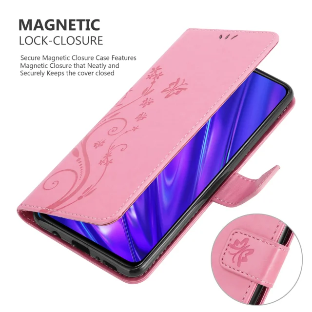 CADORABO Realme v cvetlični roza barvi - zaščitni pokrov pri oblikovanju cvetja z magnetnim zapiranjem, stoječimi funkcijami in režami za kartice
