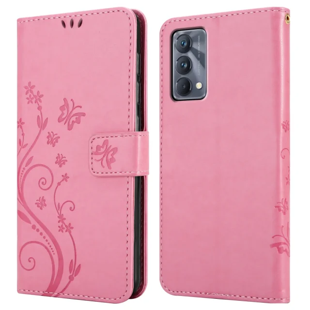 CADORABO Realme v cvetlični roza barvi - zaščitni pokrov pri oblikovanju cvetja z magnetnim zapiranjem, stoječimi funkcijami in režami za kartice
