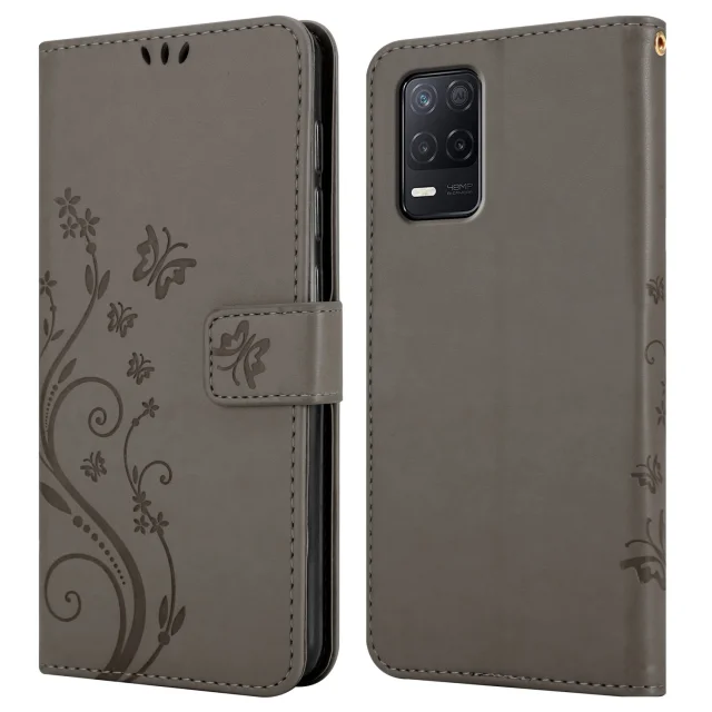 CADORABO Realme v cvetlični sivi barvi - zaščitni pokrov pri oblikovanju cvetja z magnetnim zapiranjem, stoječimi funkcijami in režami za kartice