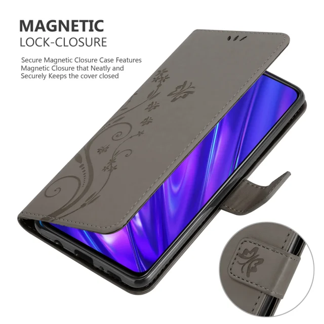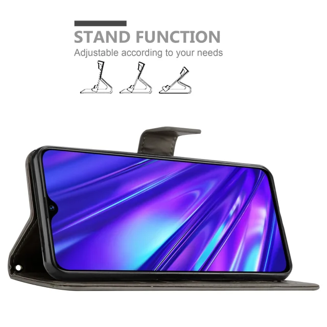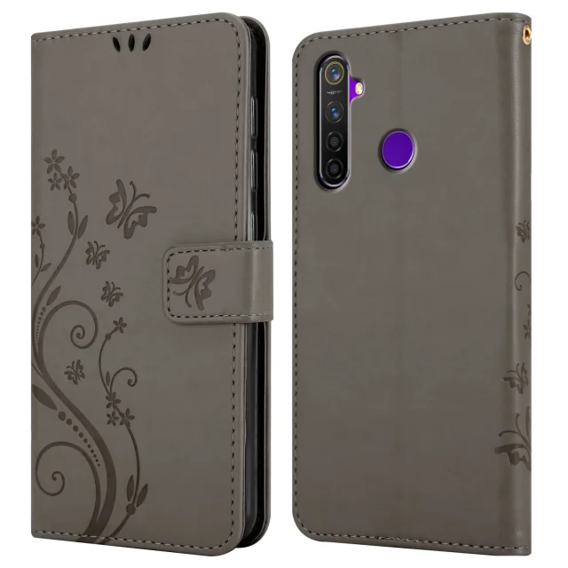 CADORABO Realme v cvetlični sivi barvi - zaščitni pokrov pri oblikovanju cvetja z magnetnim zapiranjem, stoječimi funkcijami in režami za kartice