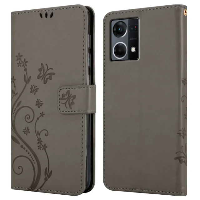 CADORABO Realme v cvetlični sivi barvi - zaščitni pokrov pri oblikovanju cvetja z magnetnim zapiranjem, stoječimi funkcijami in režami za kartice