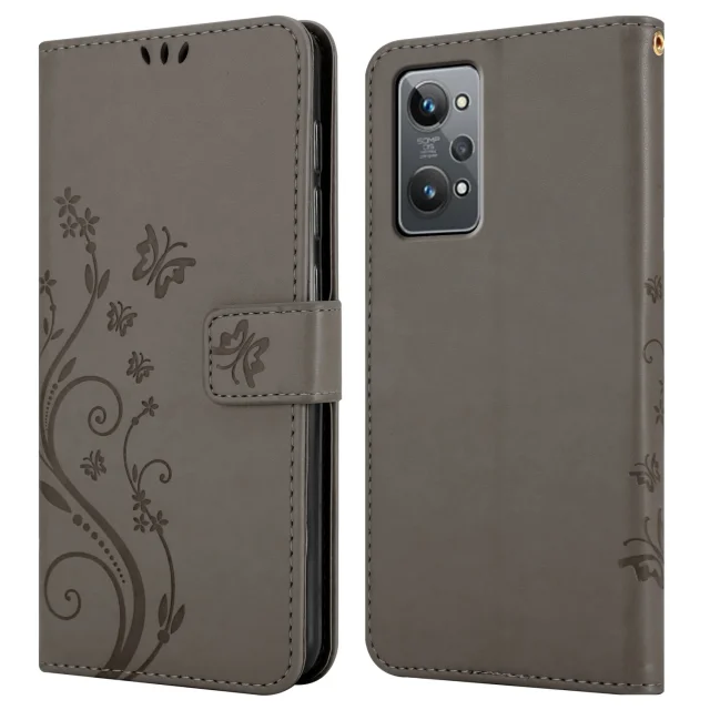 CADORABO Realme v cvetlični sivi barvi - zaščitni pokrov pri oblikovanju cvetja z magnetnim zapiranjem, stoječimi funkcijami in režami za kartice