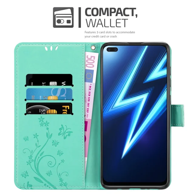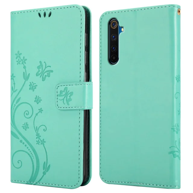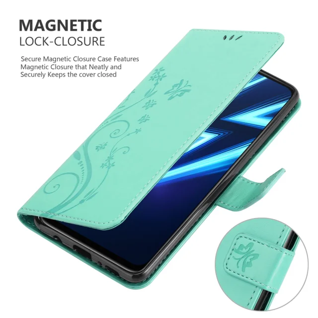 CADORABO Realme v cvetlični turkizni - Zaščitni pokrov pri oblikovanju cvetja z magnetnim zapiranjem, stoječimi funkcijami in režami za kartice