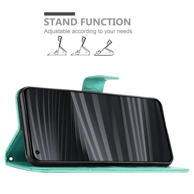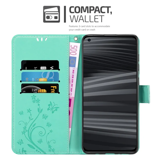 CADORABO Realme v cvetlični turkizni - Zaščitni pokrov pri oblikovanju cvetja z magnetnim zapiranjem, stoječimi funkcijami in režami za kartice