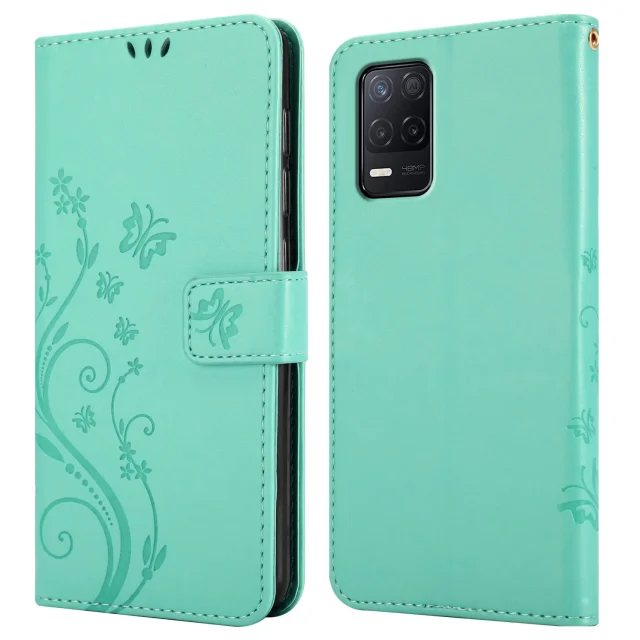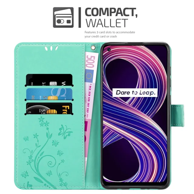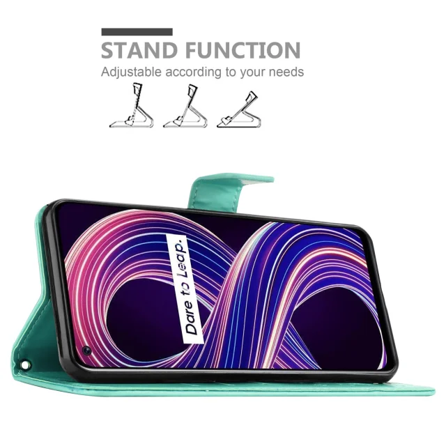 CADORABO Realme v cvetlični turkizni - Zaščitni pokrov pri oblikovanju cvetja z magnetnim zapiranjem, stoječimi funkcijami in režami za kartice