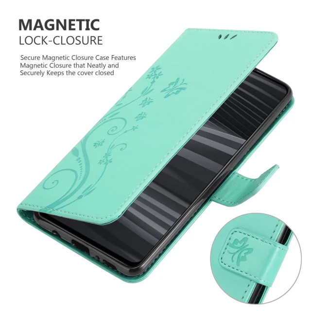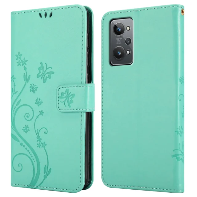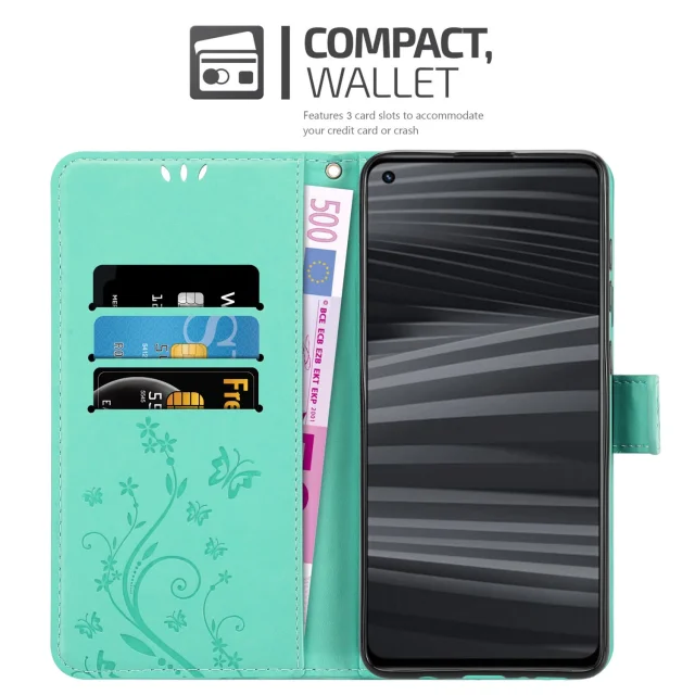 CADORABO Realme v cvetlični turkizni - Zaščitni pokrov pri oblikovanju cvetja z magnetnim zapiranjem, stoječimi funkcijami in režami za kartice