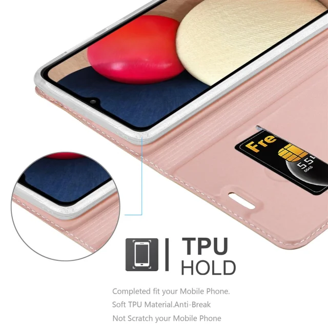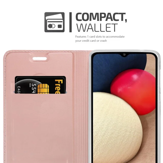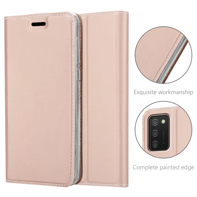 CADORABO Samsung Galaxy A02s v klasična rožnata zlata - Zaščitni ovitek z magnetnim zapiranjem, stoječo funkcijo in režo za kartice