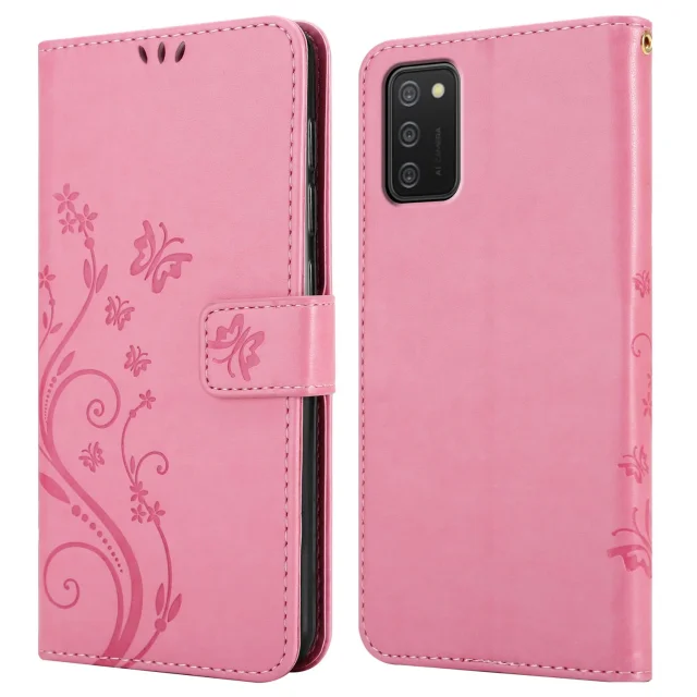 CADORABO Samsung Galaxy A02s v klasična zlata - ovitek v cvetličnem dizajnu z magnetnim zapiranjem, stoječo funkcijo in režami za kartice