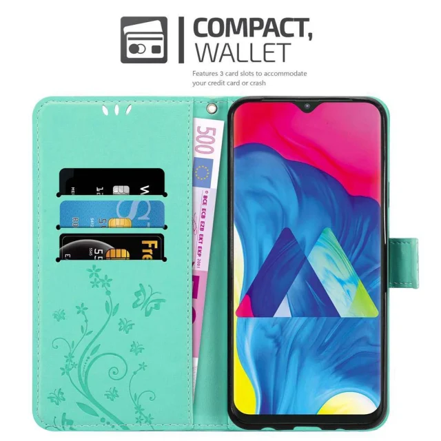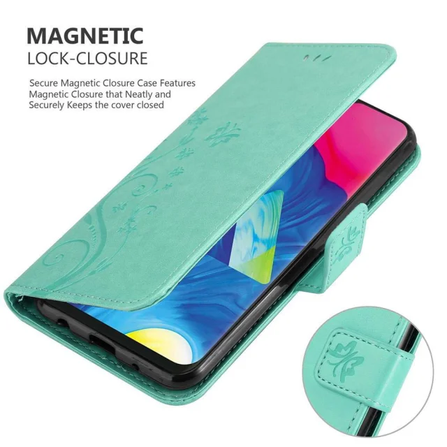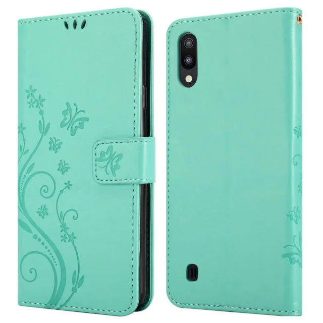 CADORABO Samsung Galaxy A10/M10 v klasično srebrno - ovitek v cvetličnem dizajnu z magnetnim zapiranjem, stoječo funkcijo in režami za kartice