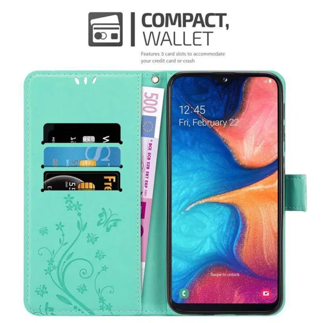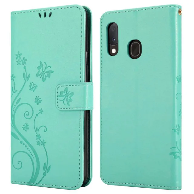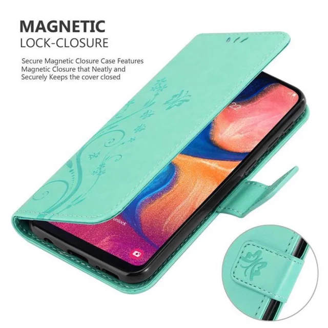 CADORABO Samsung Galaxy A10e/A20e v klasično srebrno - ovitek v cvetličnem dizajnu z magnetnim zapiranjem, stoječo funkcijo in režami za kartice