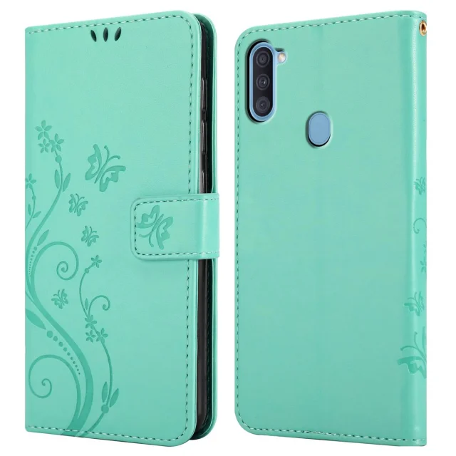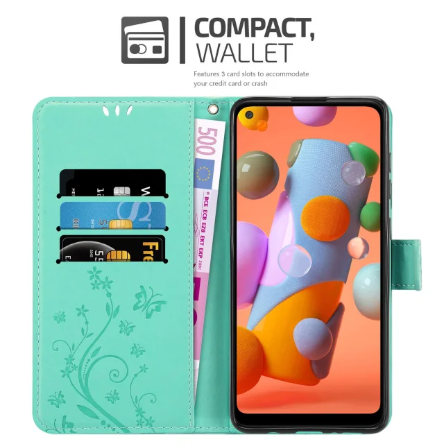 CADORABO Samsung Galaxy A11/M11 v klasično srebrno - ovitek v cvetličnem dizajnu z magnetnim zapiranjem, stoječo funkcijo in režami za kartice