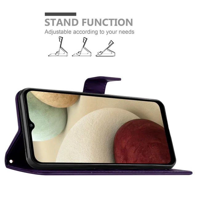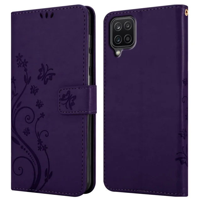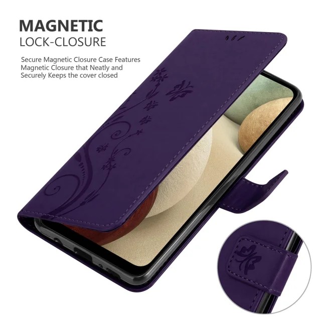 CADORABO Samsung Galaxy A12/M12 v klasična temno modra - ovitek v cvetličnem dizajnu z magnetnim zapiranjem, stoječo funkcijo in režami za kartice