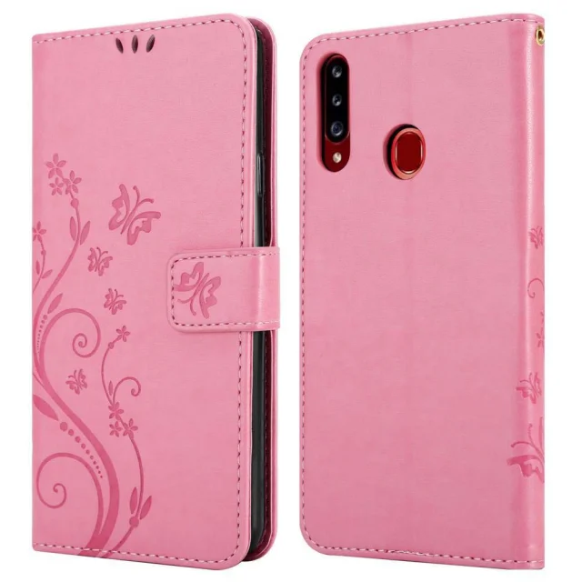 CADORABO Samsung Galaxy A20s v klasična zlata - ovitek v cvetličnem dizajnu z magnetnim zapiranjem, stoječo funkcijo in režami za kartice