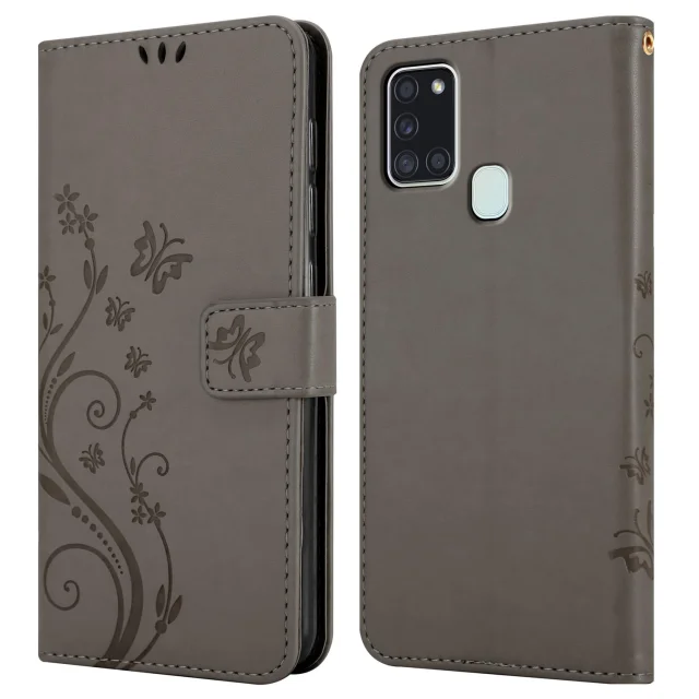 CADORABO Samsung Galaxy A21s v klasična črna - ovitek v cvetličnem dizajnu z magnetnim zapiranjem, stoječo funkcijo in režami za kartice