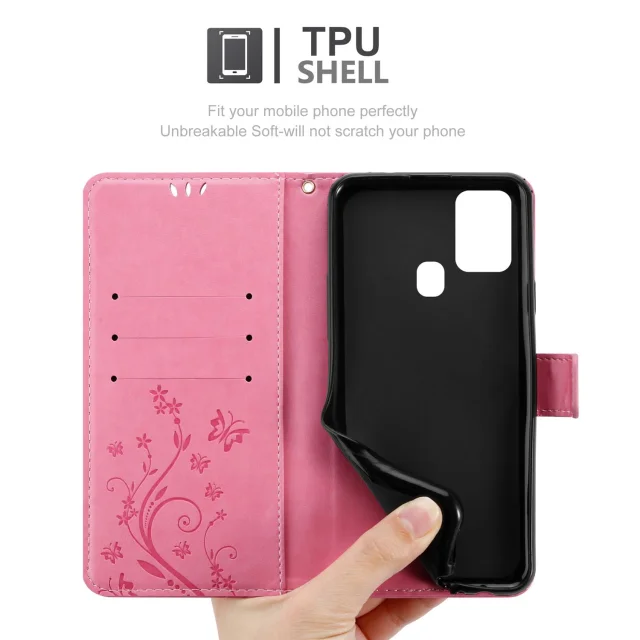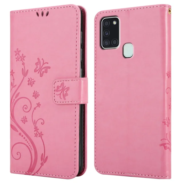 CADORABO Samsung Galaxy A21s v klasična zlata - ovitek v cvetličnem dizajnu z magnetnim zapiranjem, stoječo funkcijo in režami za kartice