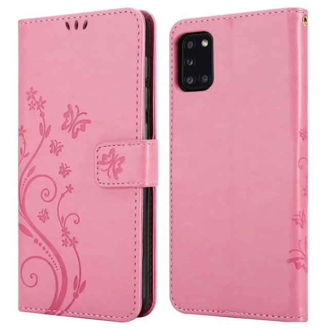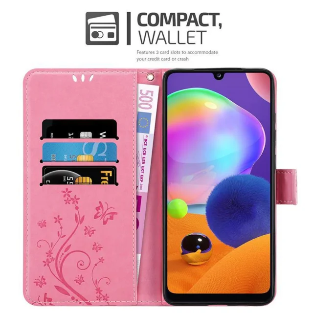 CADORABO Samsung Galaxy A31 v klasična zlata - ovitek v cvetličnem dizajnu z magnetnim zapiranjem, stoječo funkcijo in režami za kartice