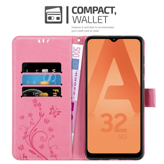 CADORABO Samsung Galaxy A32 5G v klasična zlata - ovitek v cvetličnem dizajnu z magnetnim zapiranjem, stoječo funkcijo in režami za kartice