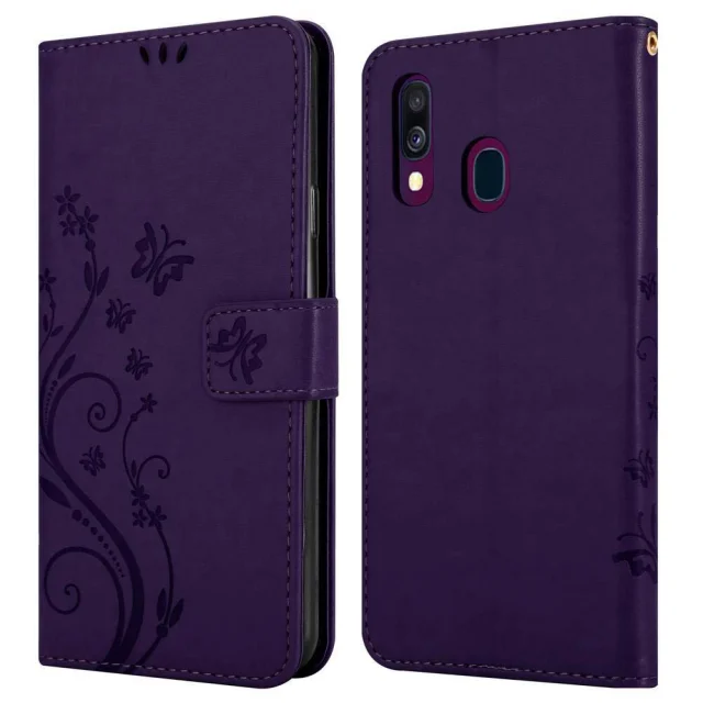 CADORABO Samsung Galaxy A40 v klasična temno modra - ovitek v cvetličnem dizajnu z magnetnim zapiranjem, stoječo funkcijo in režami za kartice