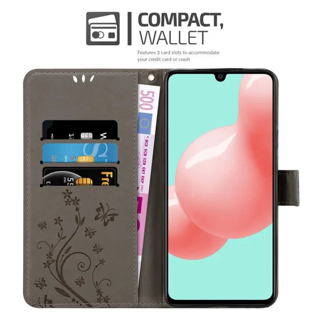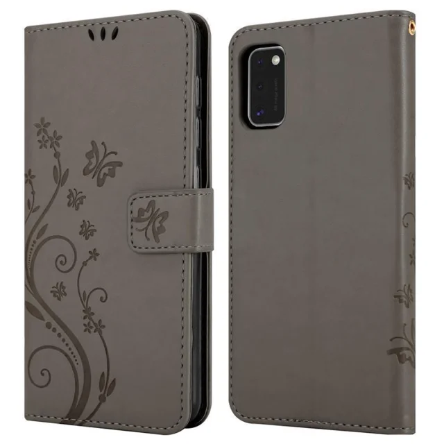 CADORABO Samsung Galaxy A41 v klasična črna - ovitek v cvetličnem dizajnu z magnetnim zapiranjem, stoječo funkcijo in režami za kartice