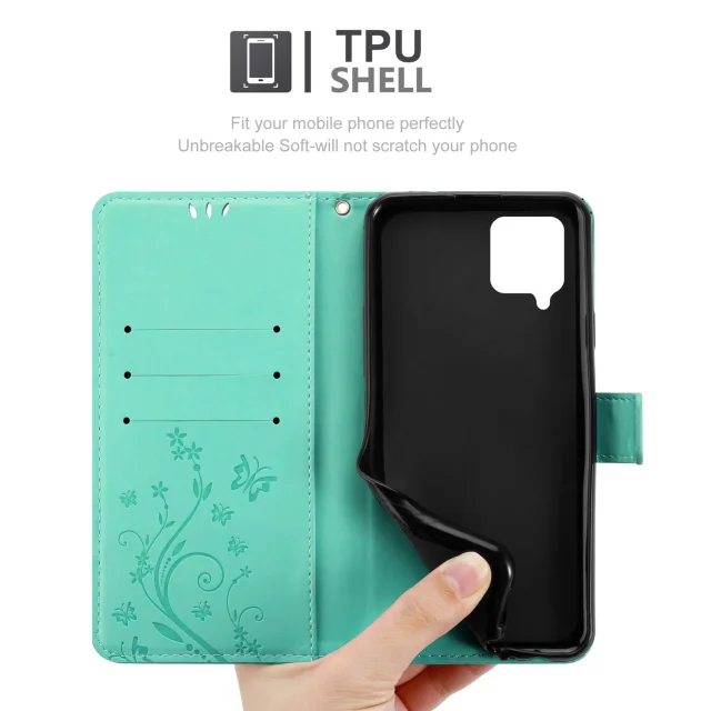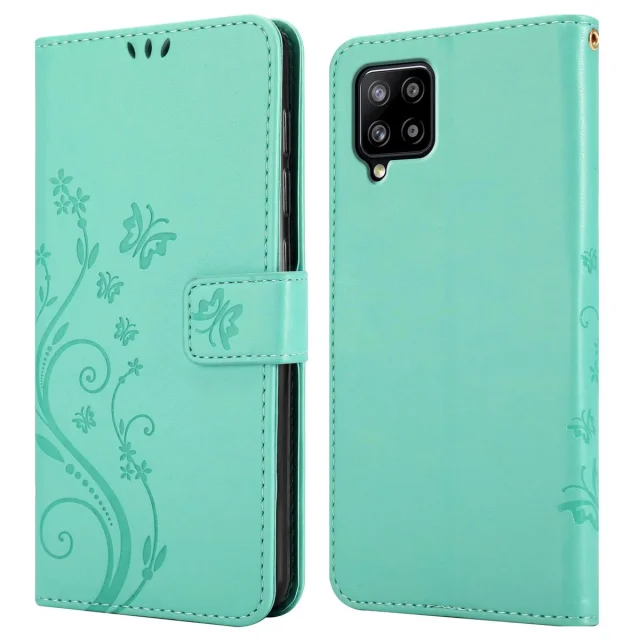 CADORABO Samsung Galaxy A42 5G/M42 5G v klasično srebrno - ovitek v cvetličnem dizajnu z magnetnim zapiranjem, stoječo funkcijo in režami za kartice