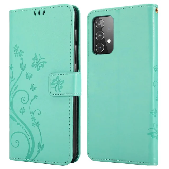 CADORABO Samsung Galaxy A52 (4G/5G)/A52s srebrna - ovitek v cvetličnem dizajnu z magnetnim zapiranjem, stoječo funkcijo in režami za kartice