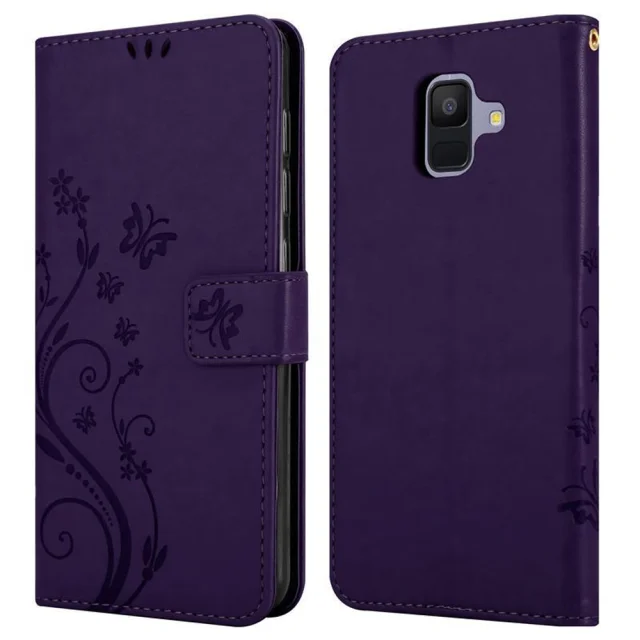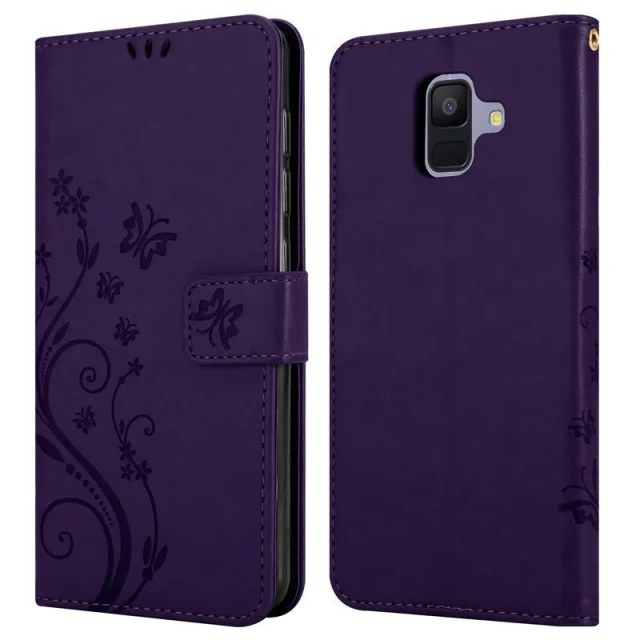 CADORABO Samsung Galaxy A6 2018 v klasična temno modra - ovitek v cvetličnem dizajnu z magnetnim zapiranjem, stoječo funkcijo in režami za kartice