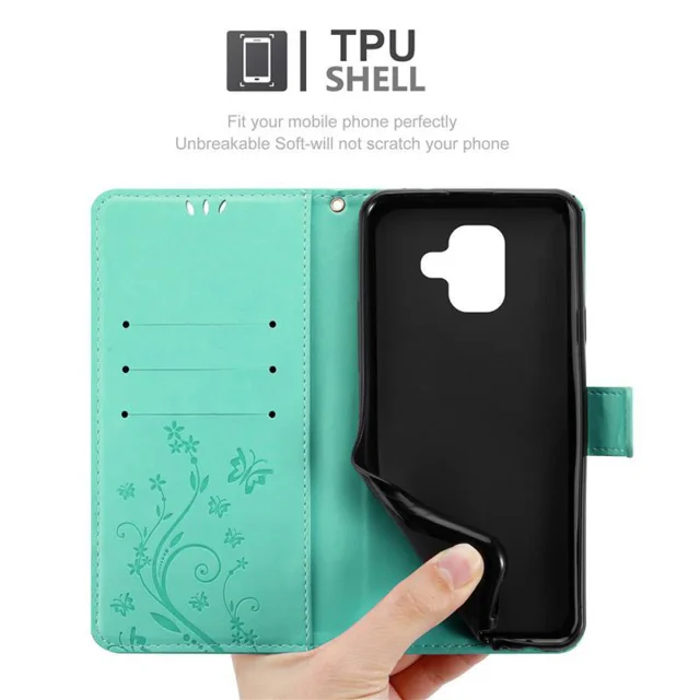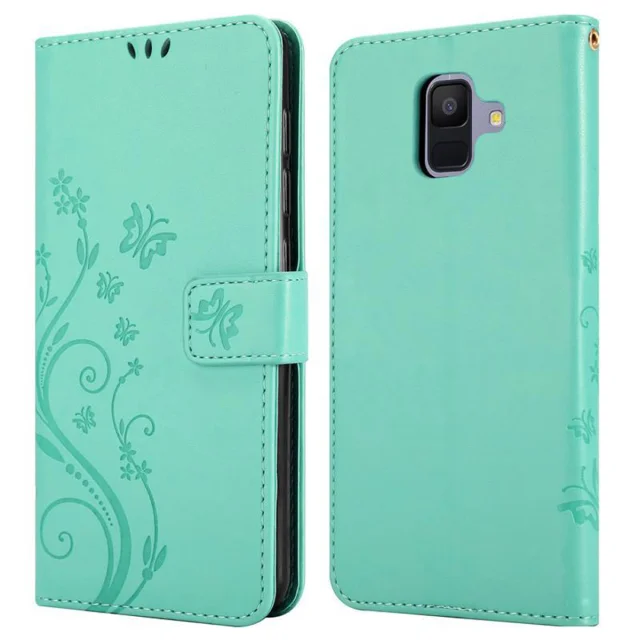CADORABO Samsung Galaxy A6 2018 v klasično srebrno - ovitek v cvetličnem dizajnu z magnetnim zapiranjem, stoječo funkcijo in režami za kartice