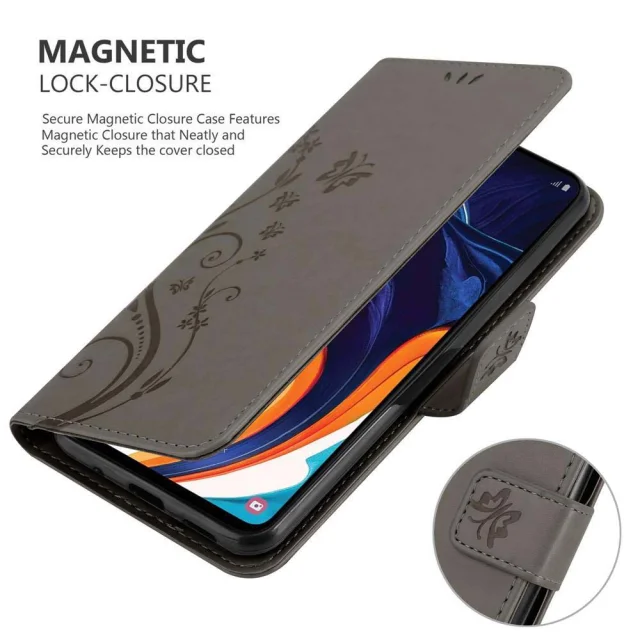 CADORABO Samsung Galaxy A60/M40 v klasična črna - ovitek v cvetličnem dizajnu z magnetnim zapiranjem, stoječo funkcijo in režami za kartice