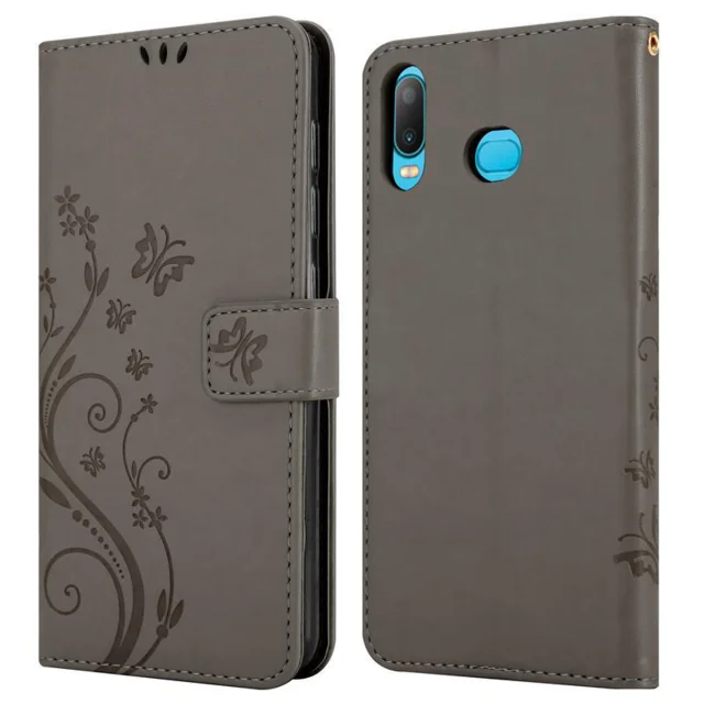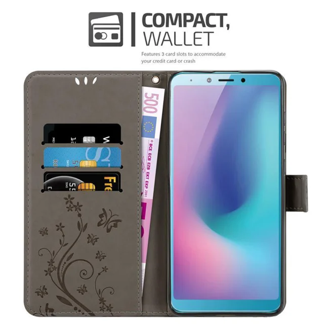 CADORABO Samsung Galaxy A6s v klasična črna - ovitek v cvetličnem dizajnu z magnetnim zapiranjem, stoječo funkcijo in režami za kartice