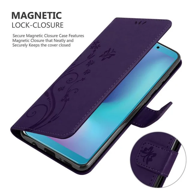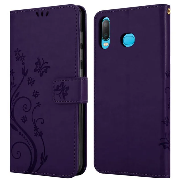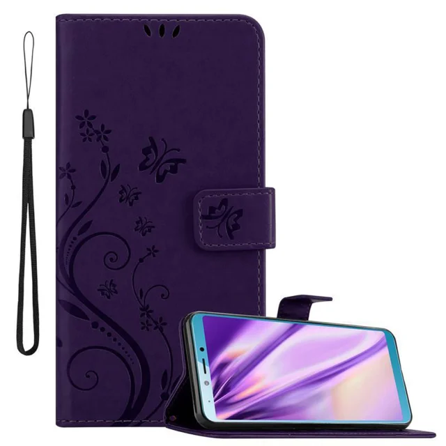CADORABO Samsung Galaxy A6s v klasična temno modra - ovitek v cvetličnem dizajnu z magnetnim zapiranjem, stoječo funkcijo in režami za kartice