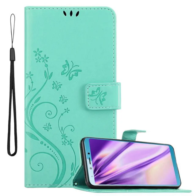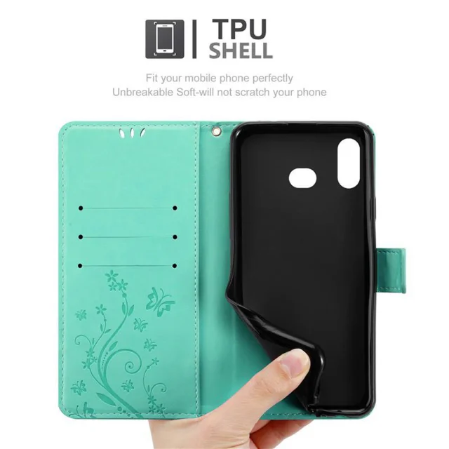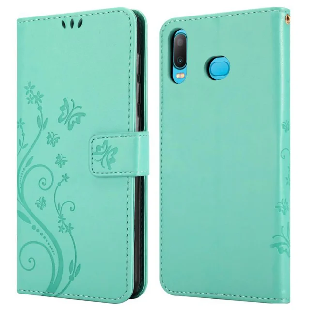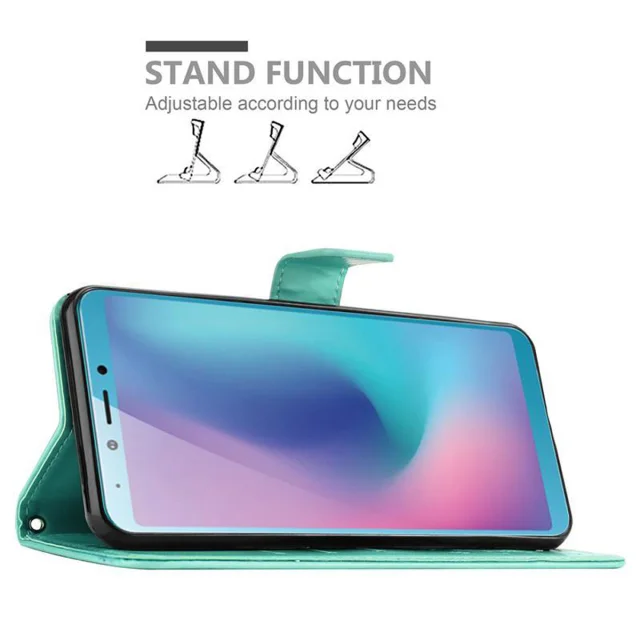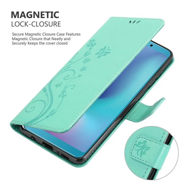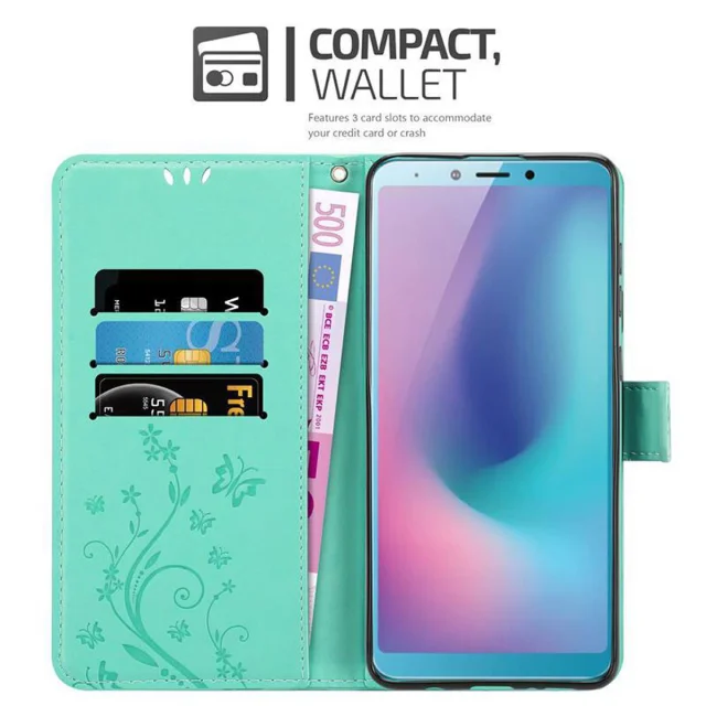CADORABO Samsung Galaxy A6s v klasično srebrno - ovitek v cvetličnem dizajnu z magnetnim zapiranjem, stoječo funkcijo in režami za kartice
