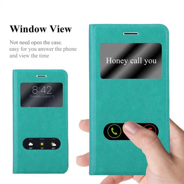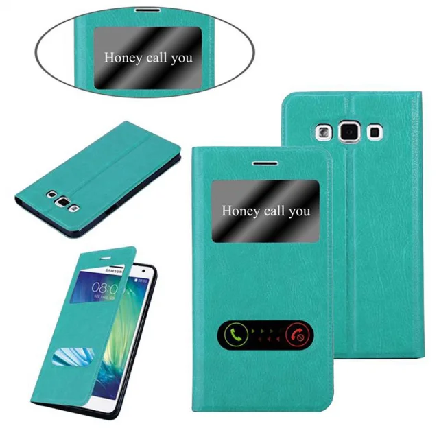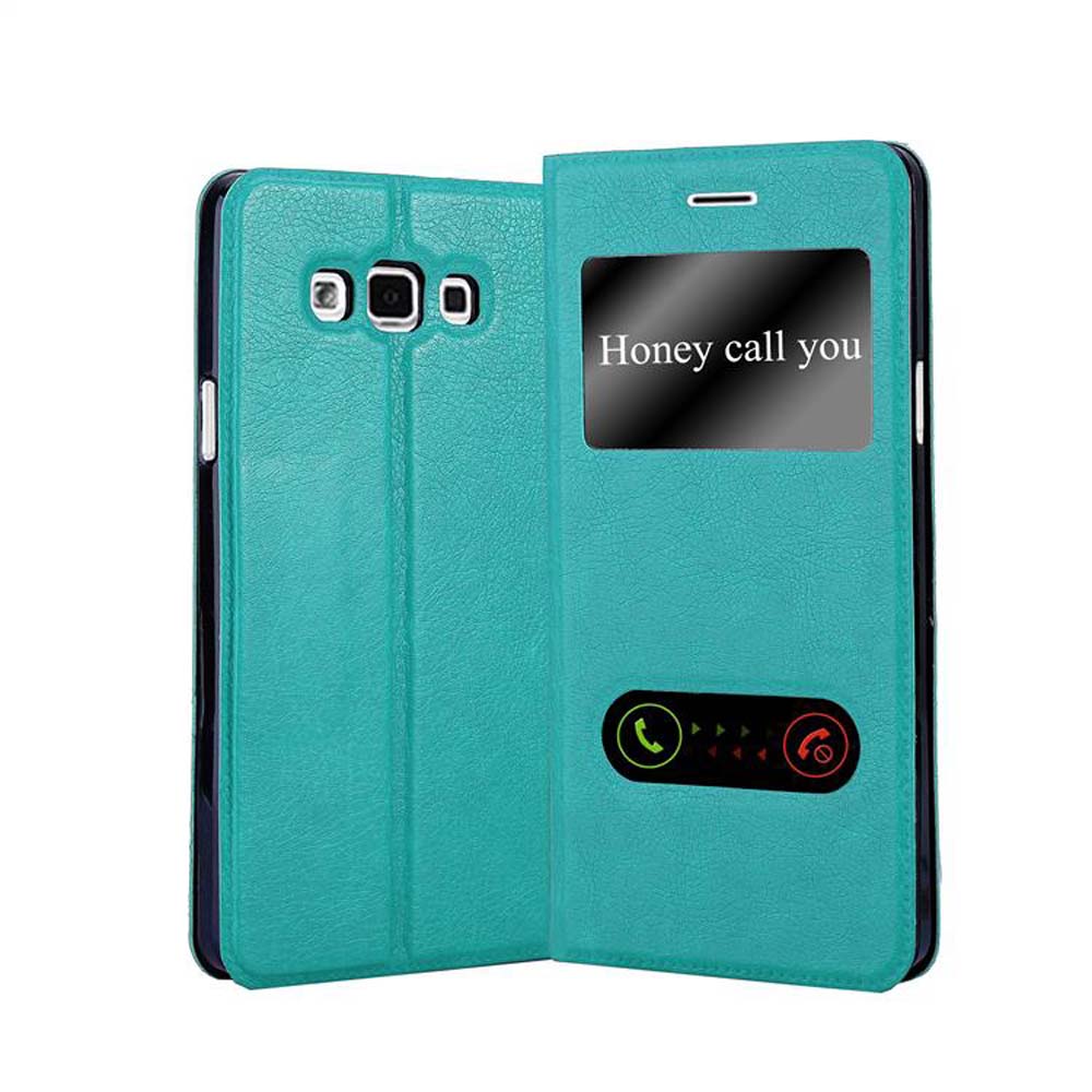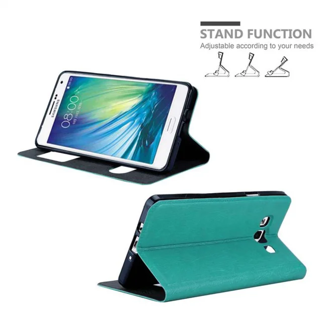 CADORABO Samsung Galaxy A7 2015 v mint turquoise - Zaščitni ovitek z magnetnim zapiranjem, stoječo funkcijo in 2 okencema za gledanje