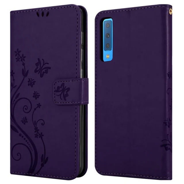 CADORABO Samsung Galaxy A7 2018 v klasična temno modra - ovitek v cvetličnem dizajnu z magnetnim zapiranjem, stoječo funkcijo in režami za kartice