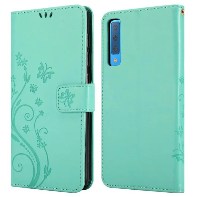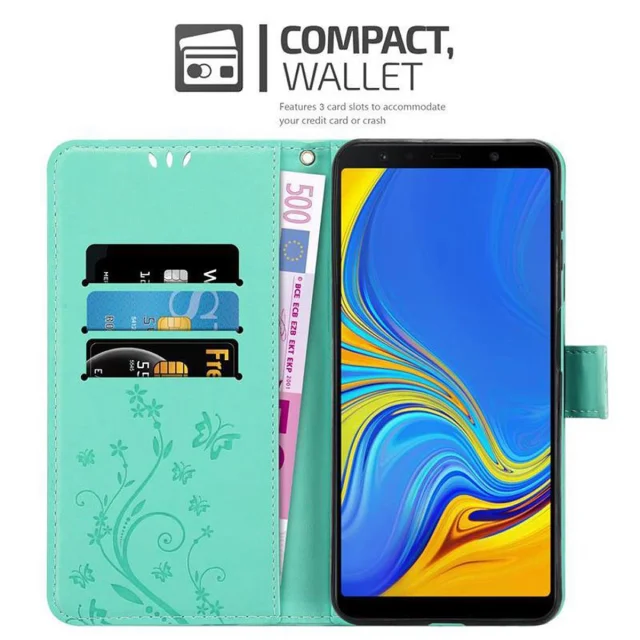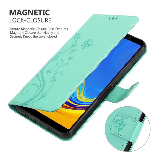 CADORABO Samsung Galaxy A7 2018 v klasično srebrno - ovitek v cvetličnem dizajnu z magnetnim zapiranjem, stoječo funkcijo in režami za kartice