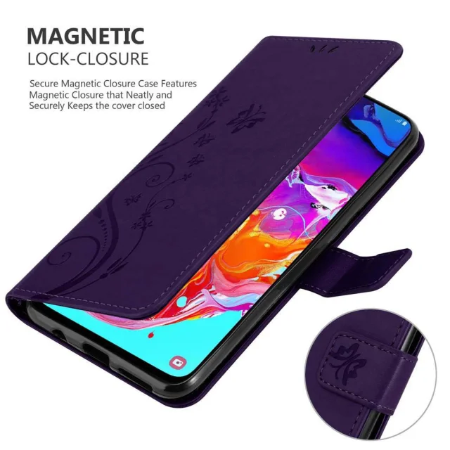 CADORABO Samsung Galaxy A70/A70s v klasična temno modra - ovitek v cvetličnem dizajnu z magnetnim zapiranjem, stoječo funkcijo in režami za kartice
