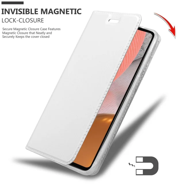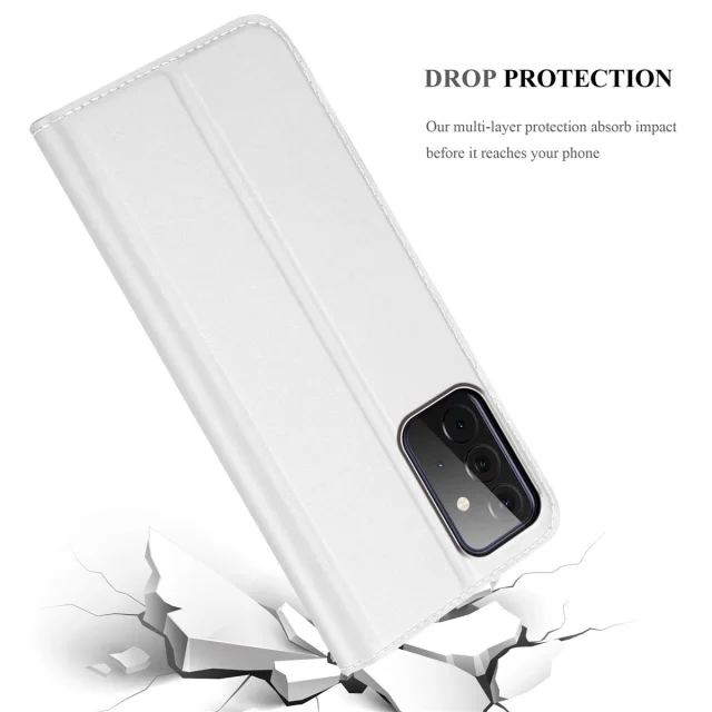 CADORABO Samsung Galaxy A72 4G/5G v klasično srebrno - Zaščitni ovitek z magnetnim zapiranjem, stoječo funkcijo in režo za kartice