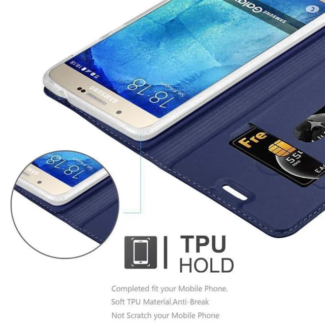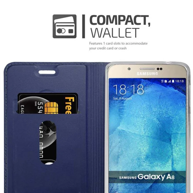 CADORABO Samsung Galaxy A8 2015 v klasična temno modra - Zaščitni ovitek z magnetnim zapiranjem, stoječo funkcijo in režo za kartice