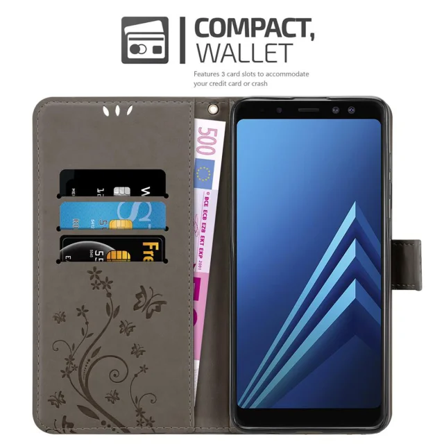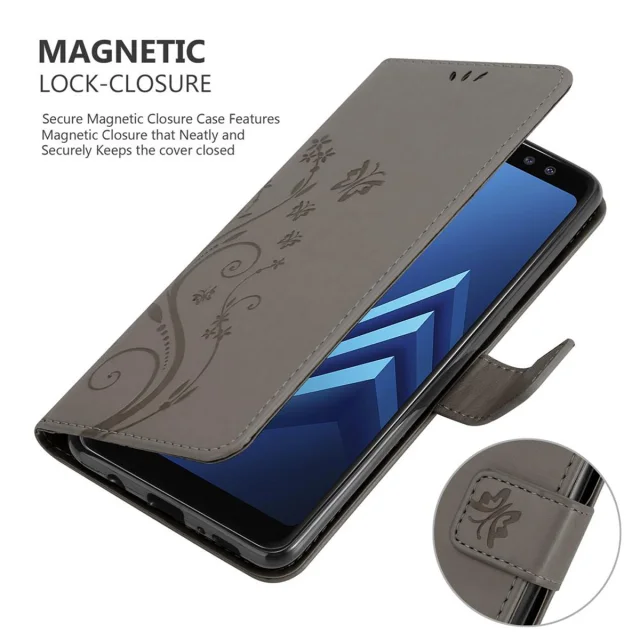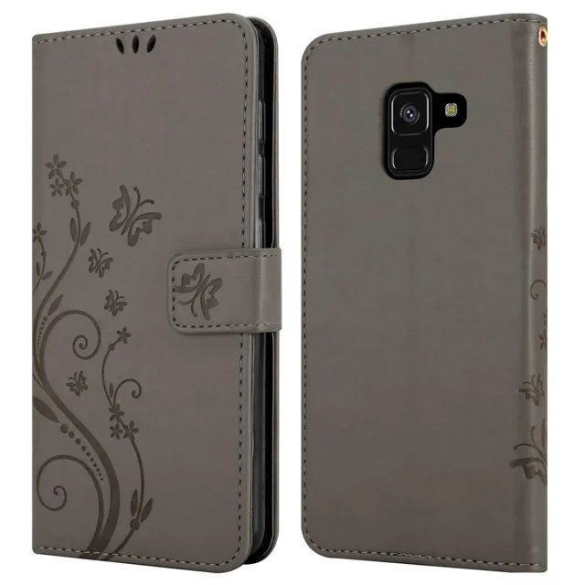 CADORABO Samsung Galaxy A8 2018 v klasična črna - ovitek v cvetličnem dizajnu z magnetnim zapiranjem, stoječo funkcijo in režami za kartice