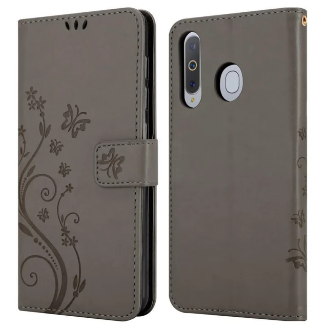 CADORABO Samsung Galaxy A8s v klasična črna - ovitek v cvetličnem dizajnu z magnetnim zapiranjem, stoječo funkcijo in režami za kartice