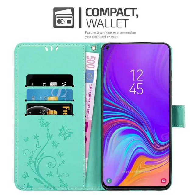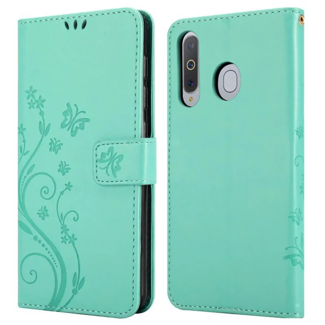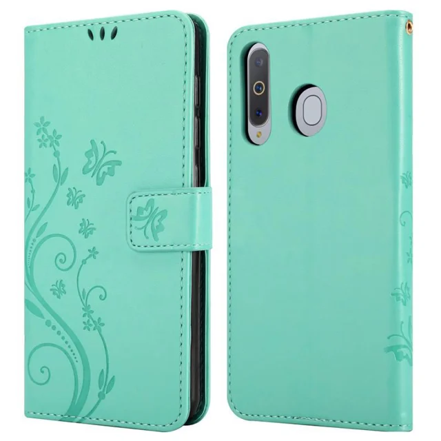 CADORABO Samsung Galaxy A8s v klasično srebrno - ovitek v cvetličnem dizajnu z magnetnim zapiranjem, stoječo funkcijo in režami za kartice