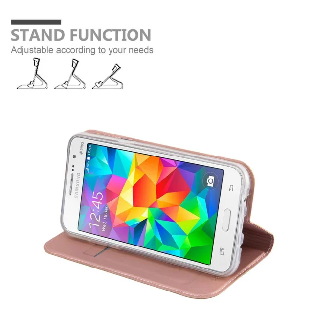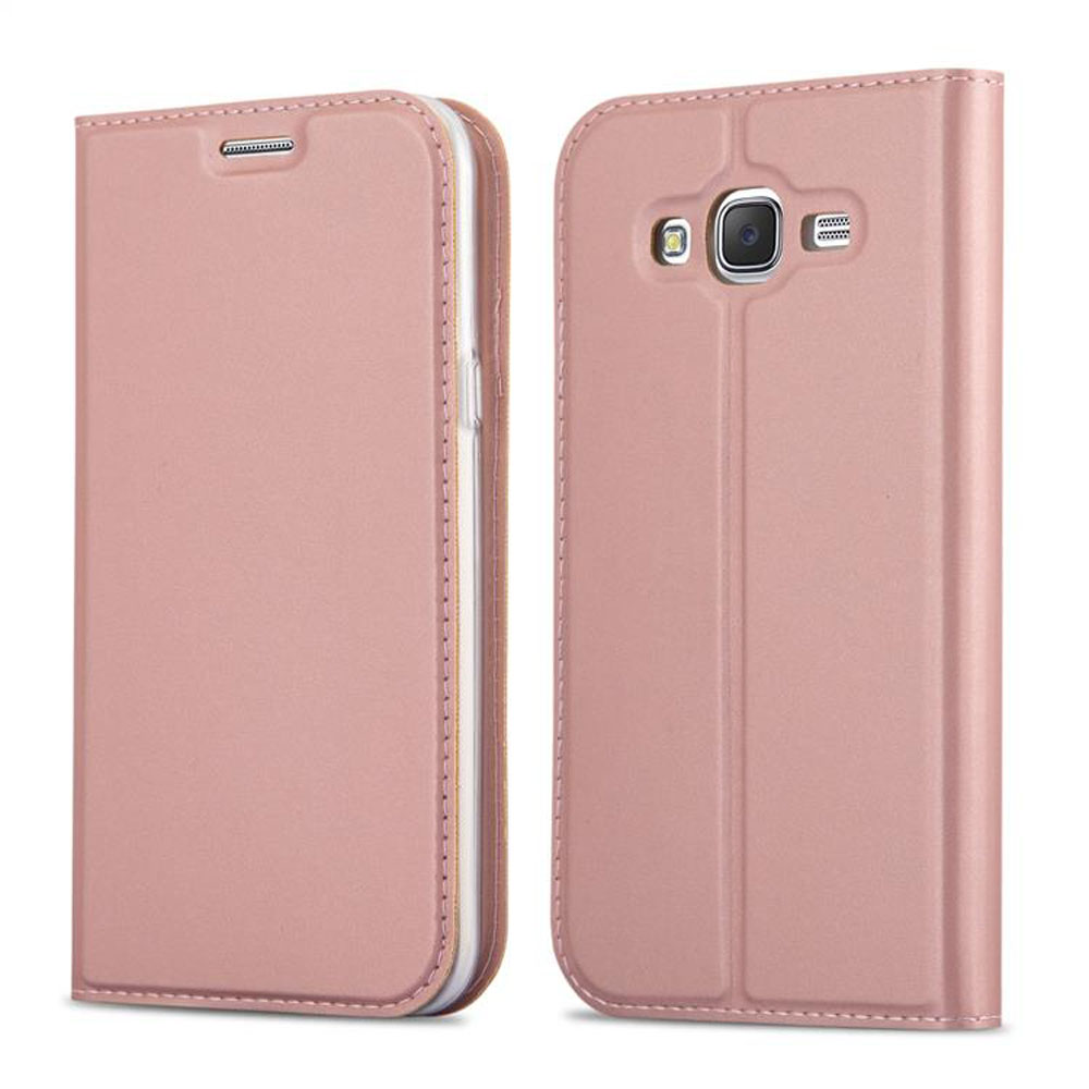 CADORABO Samsung Galaxy GRAND PRIME v klasična rožnata zlata - Zaščitni ovitek z magnetnim zapiranjem, stoječo funkcijo in režo za kartice